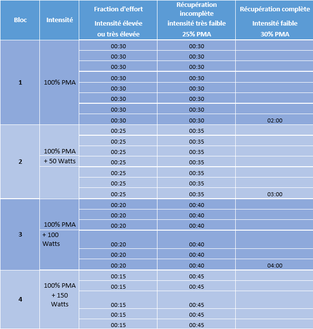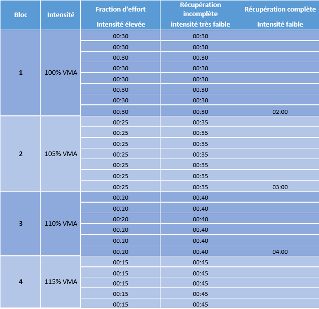 Une séance de ce type dure 35 minutes (hors échauffement et récupération).